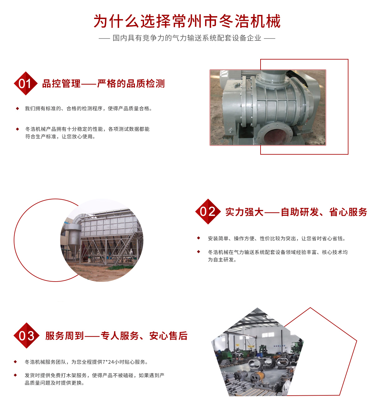 常州市冬浩機械有限公司占地面積5000平方米,擁有一支專業(yè)的科技研發(fā)團隊和配備專業(yè)的生產(chǎn)設備。專業(yè)致力于氣力輸送系統(tǒng)配套設備的研發(fā)、生產(chǎn)及銷售。產(chǎn)品在實際應用中不斷創(chuàng)新、不斷升級,現(xiàn)已對接實現(xiàn)自動化、智能化、人性化。實踐證明公司生產(chǎn)的吸糧機系列、高溫羅茨風機系列、關風機系列、氣力輸送設備系列、特殊工況訂制系列的產(chǎn)品被廣泛運用于石油化工、油脂、化工干燥、除塵、冶金、環(huán)保、電子、煤炭、建筑、電力機械、糧食、飼料等行業(yè)。為解決輸送、搬運等環(huán)節(jié)中節(jié)約大量的人力、財力;從而提高了生產(chǎn)效率。